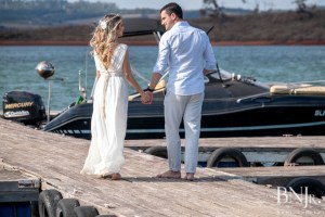 Foto: Beni Jr – www.beni.com.br – foto ao ar livre noivos a beira represa no deck de lanchas Balneário Riviera Real Camargos fotografo de casamento Beni Jr