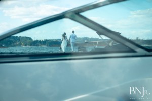 Foto: Beni Jr – www.beni.com.br – foto ao ar livre noivos a beira represa com lancha Balneário Riviera Real Camargos fotografo de casamento Beni Jr